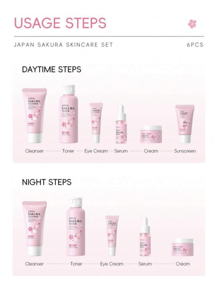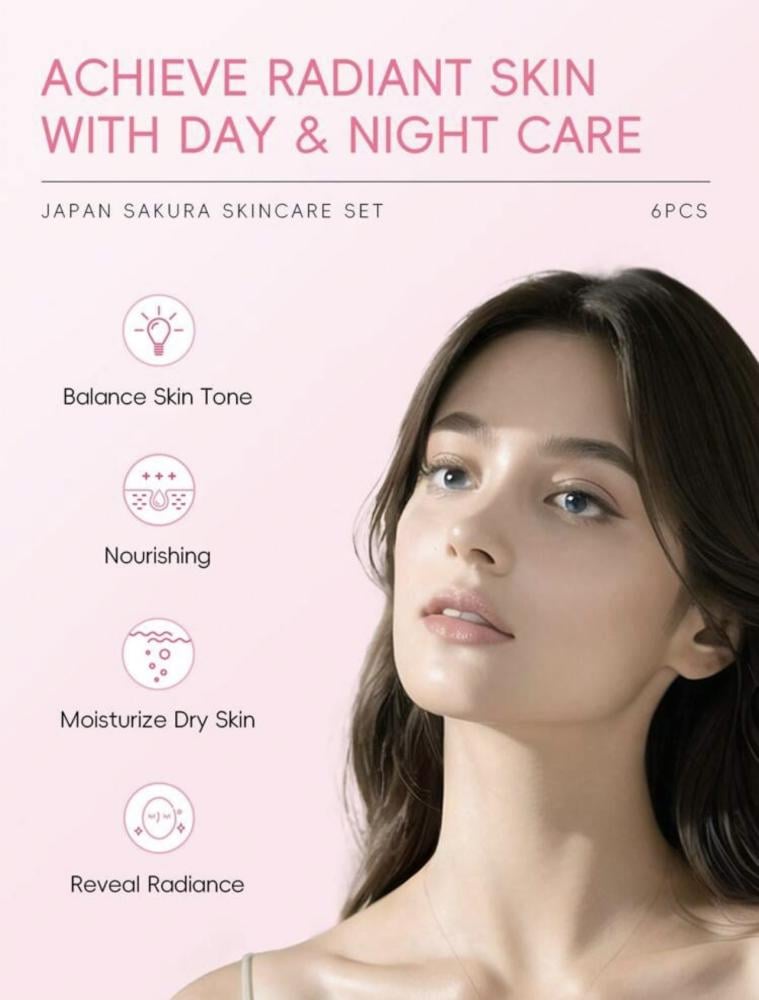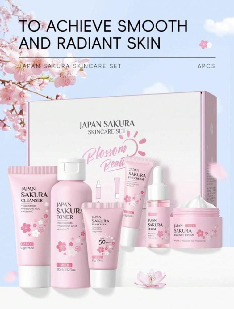 بوكس إشراقة البشرة من زهرة الساكورا ., مواد طبيعيه 100% وأحذروا التقليد ،، بوكس من 6 قطع . قابل للاسترجاع وتوصيل سريع