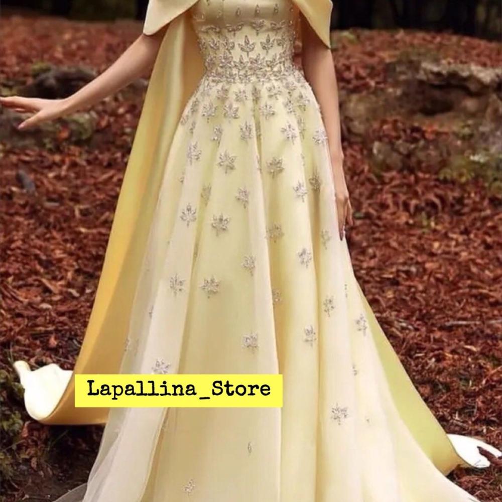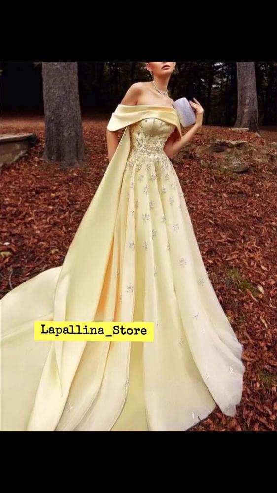 فستان سهرة ملكي تفصيل من التول الفرنسي و الكريب مزين بالخرز و الترتر
