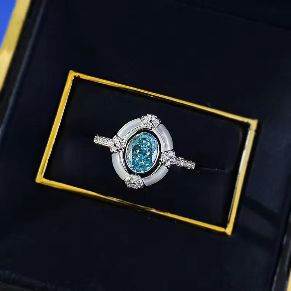 خاتم نسائي جديد مستورد من الفضة الإسترليني S925 الاصلي و مرصع بأحجار الأكوامارين عالية الكربون مقاس 6*8 مم، من أجود الأحجار