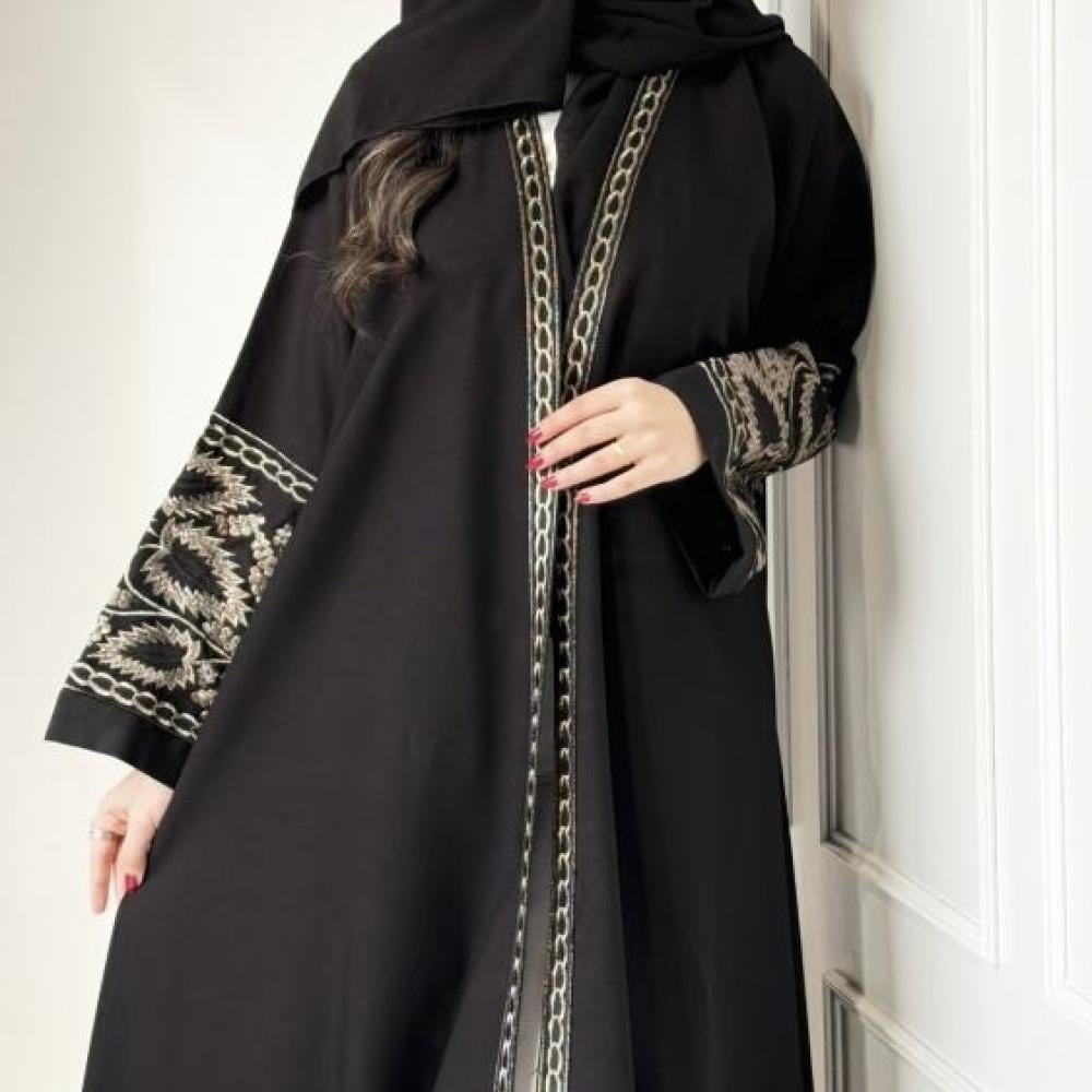 عباية موديل تطريز على الامام و الكم بقصة نص كلوش