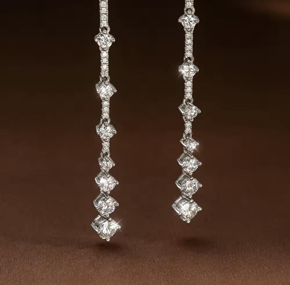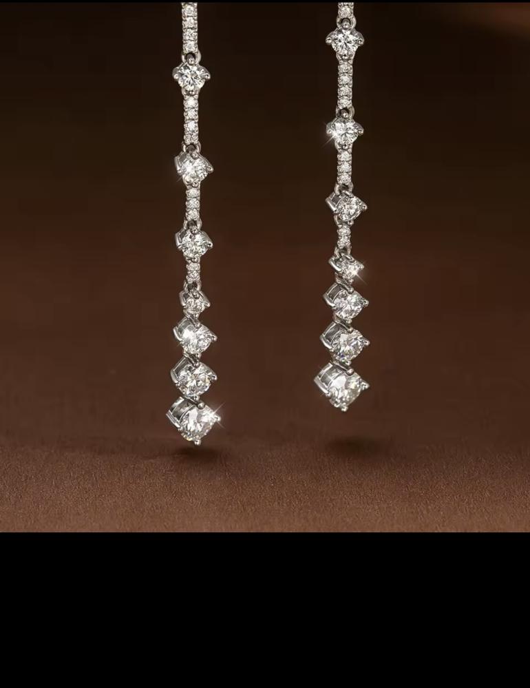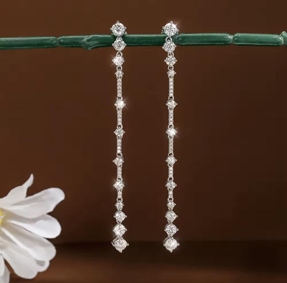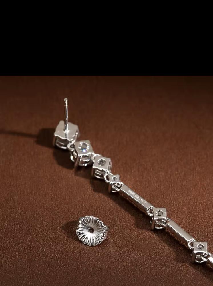 حلق مرصع بماسة المويسانيتي، من الفضه الأصلي و مطلي ذهب أبيض