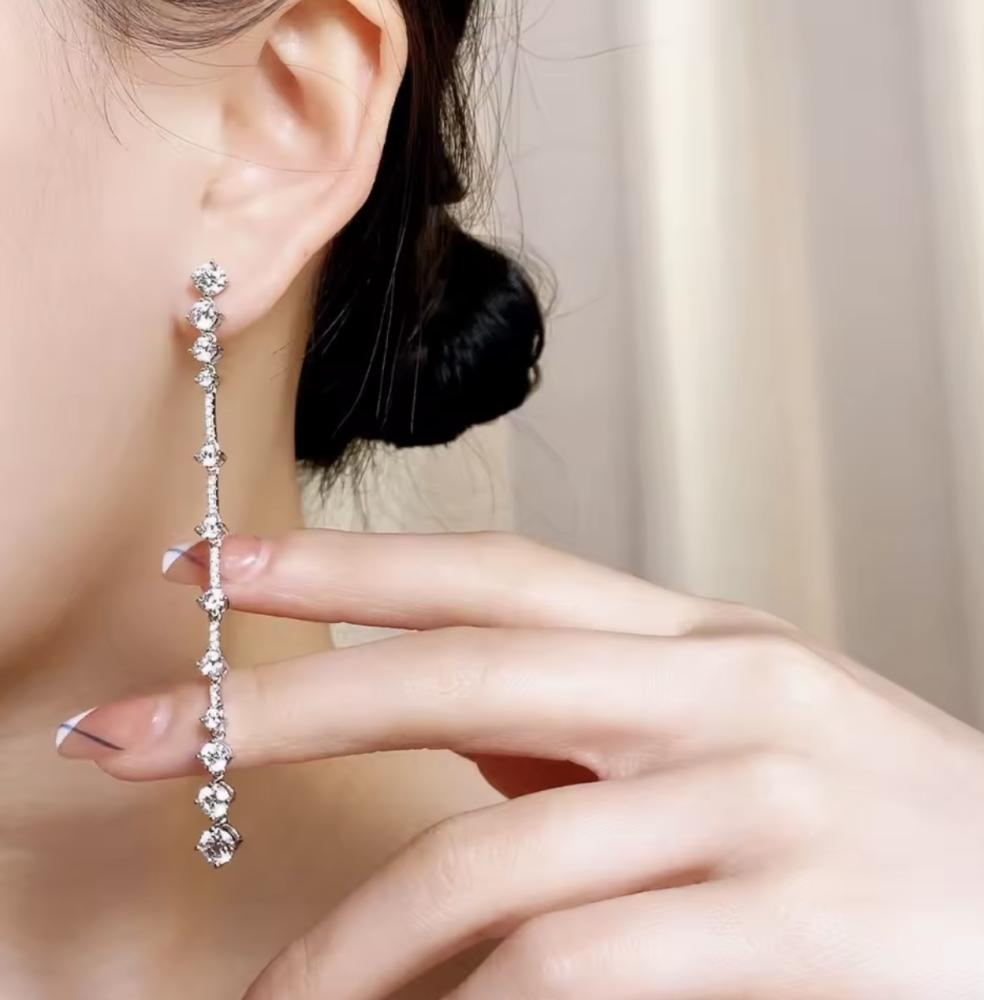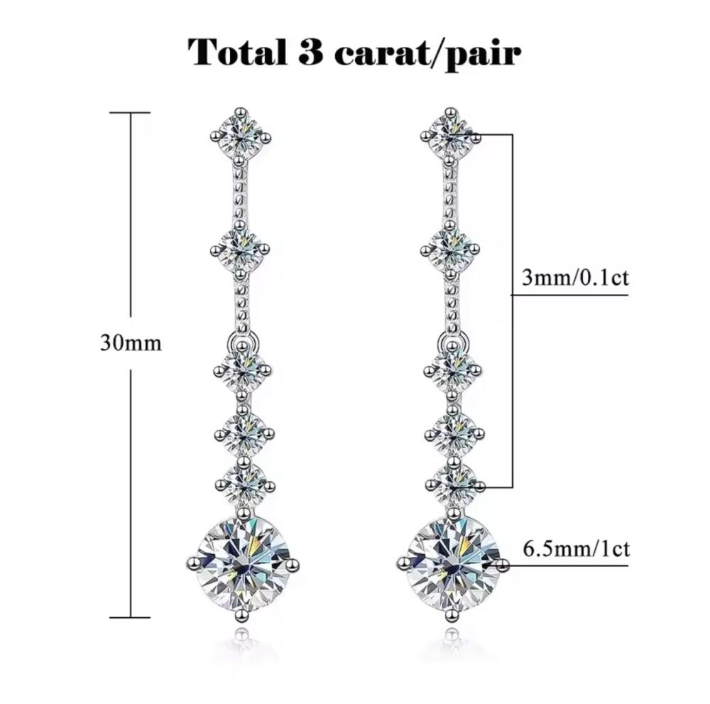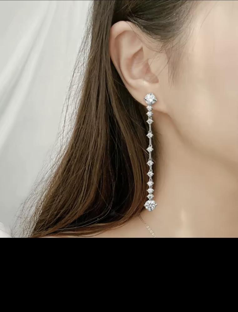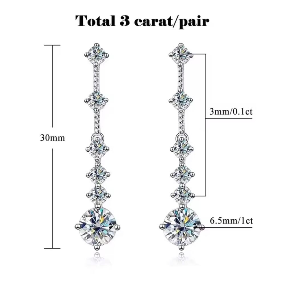 حلق مرصع بماسة المويسانيتي، من الفضه الأصلي و مطلي ذهب أبيض