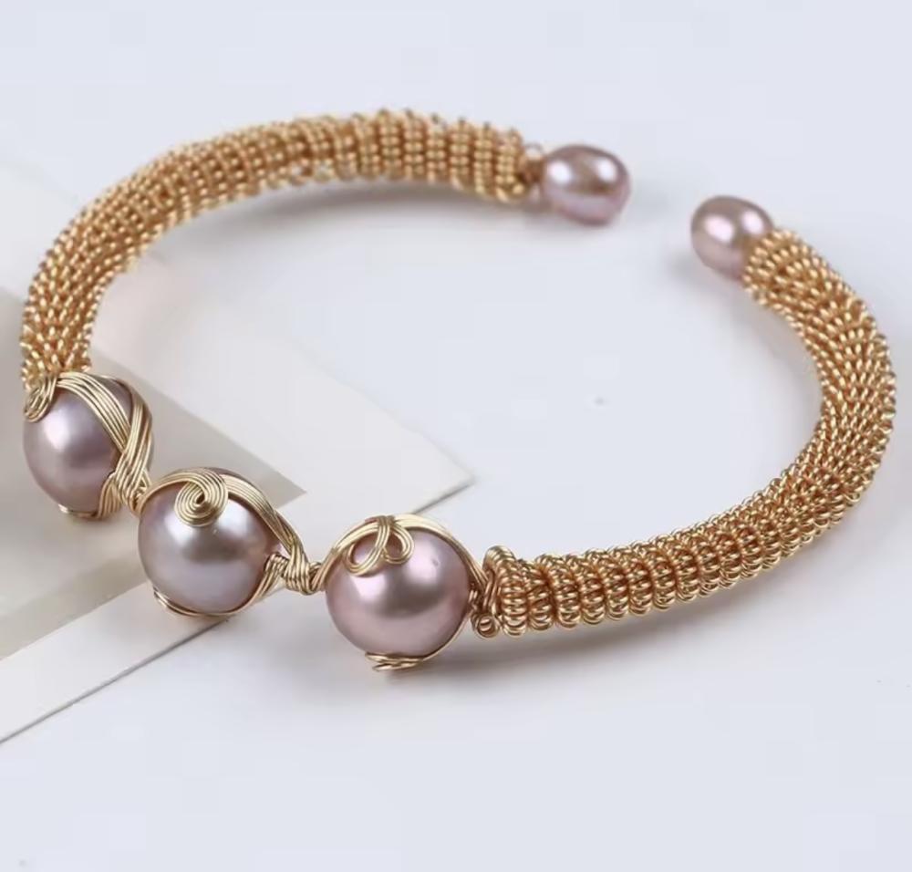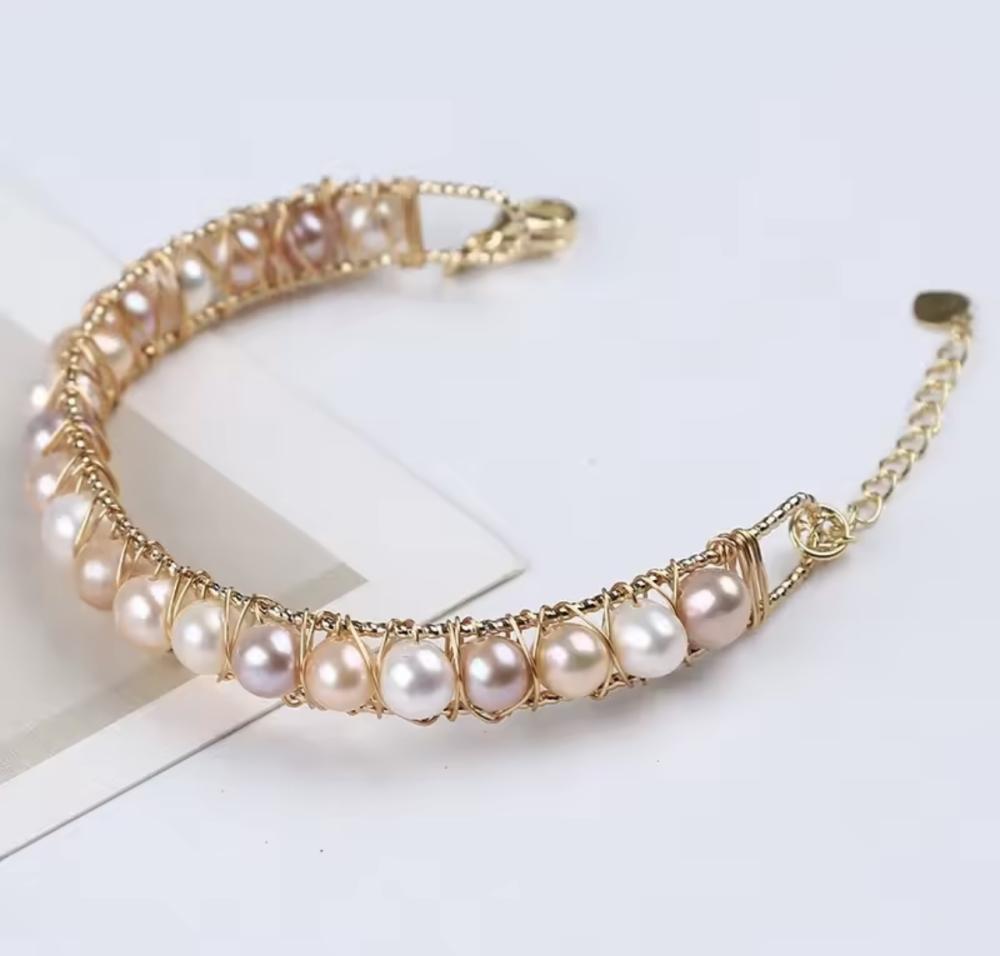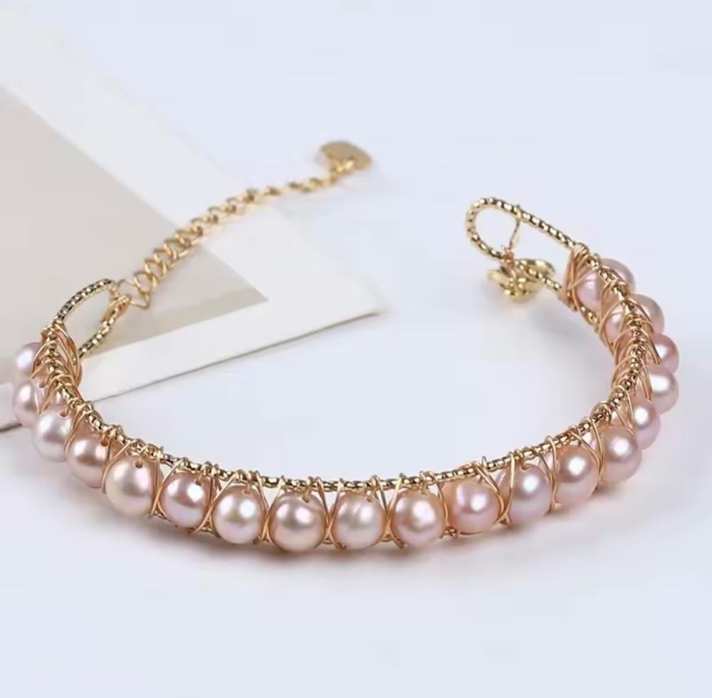إسوره صناعه يدويه من اللؤلؤ الطبيعي و الفضه الاصلي S925 ومطلي بالذهب عيار 18k.. الرجاء قراءة طرق المحافظه على المجوهرات 🤍