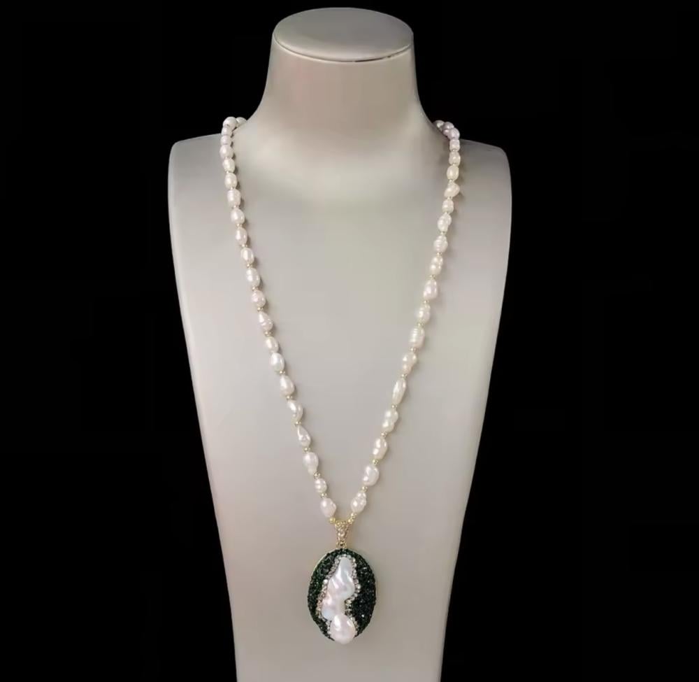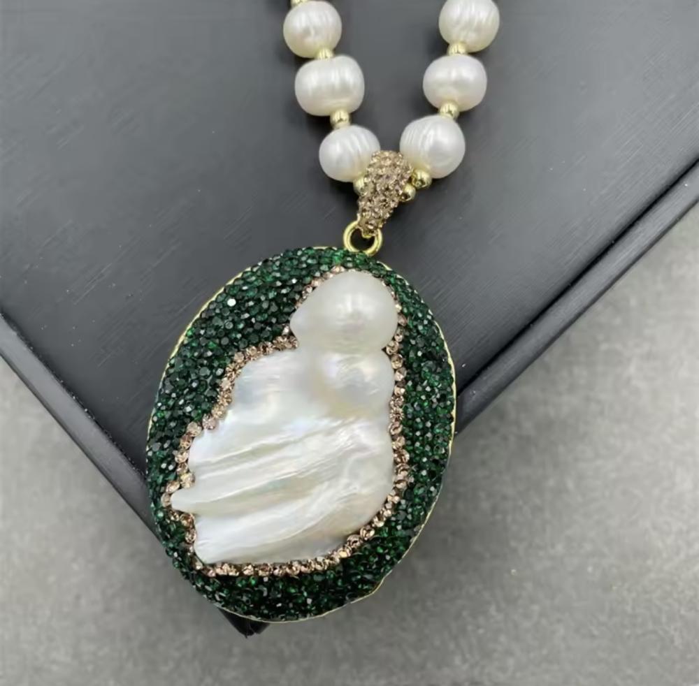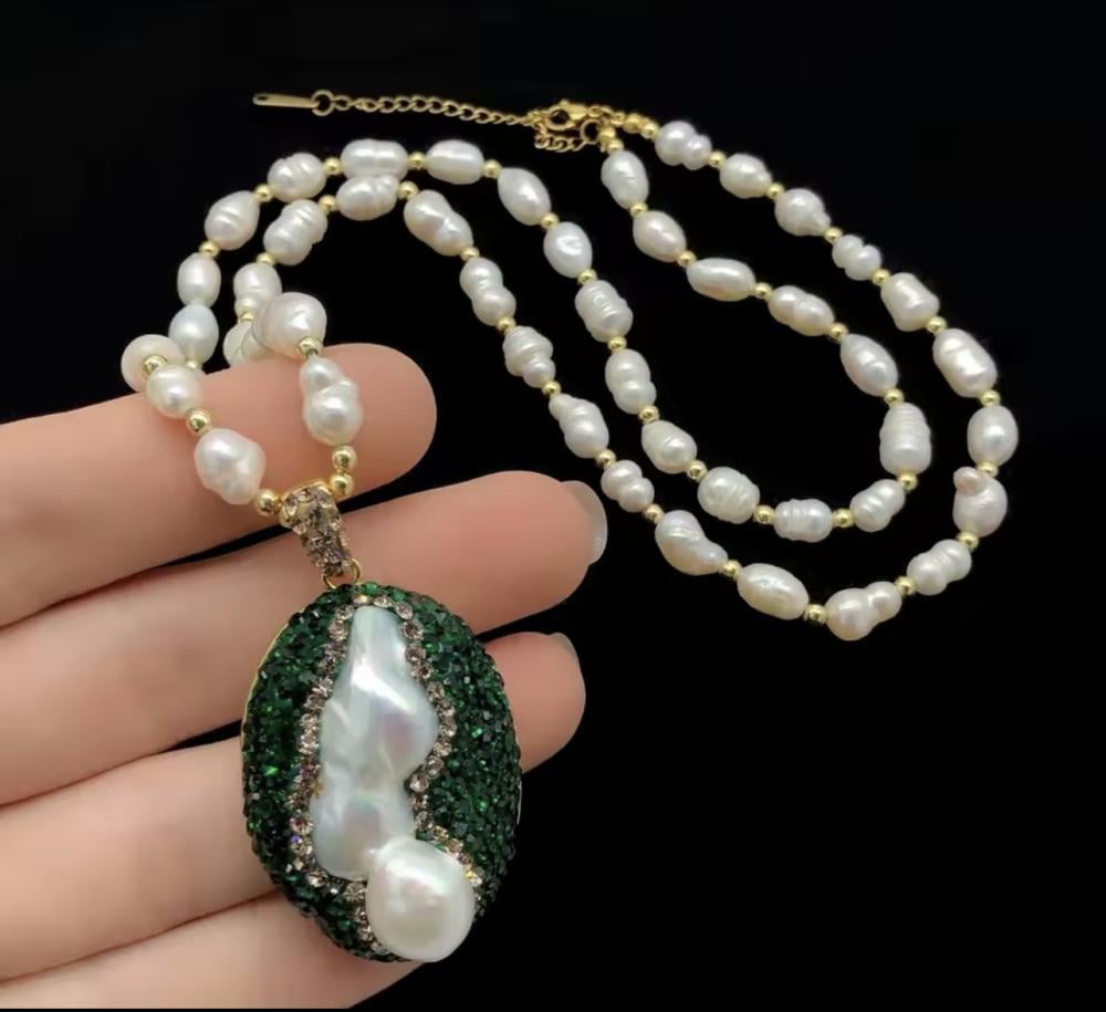 قلادة مصنوع صناعه يدويه من اللؤلؤ الطبيعي و الفضه الاصلي S925 ومطلي بالذهب عيار 18k