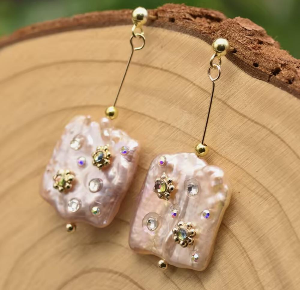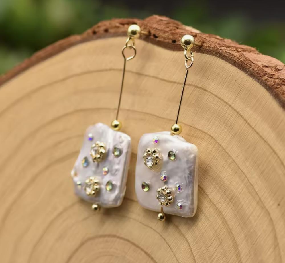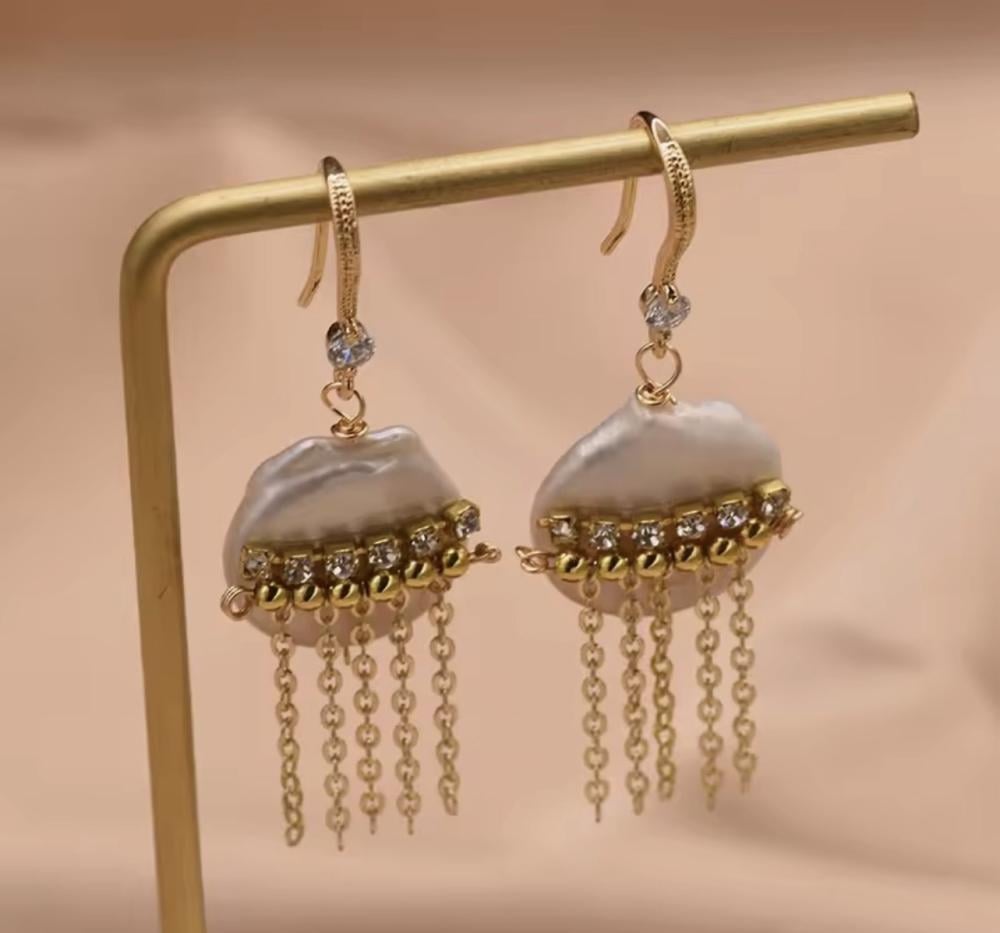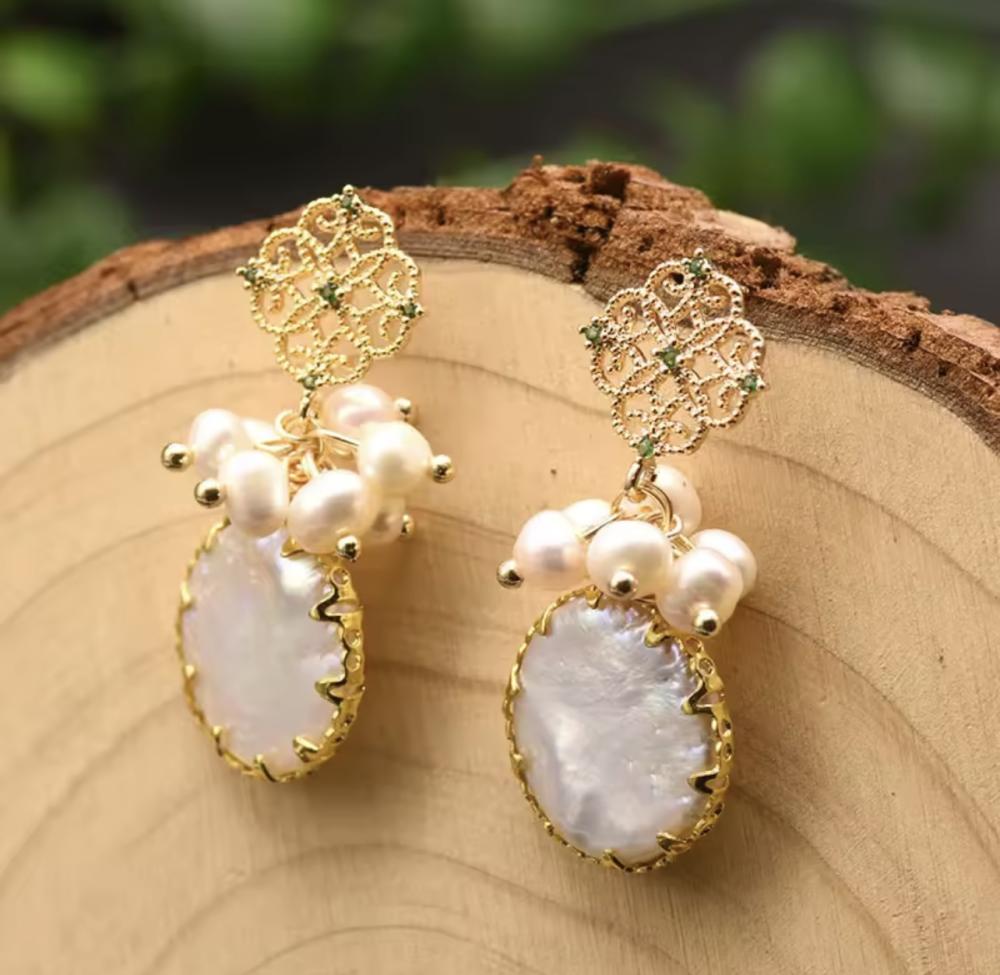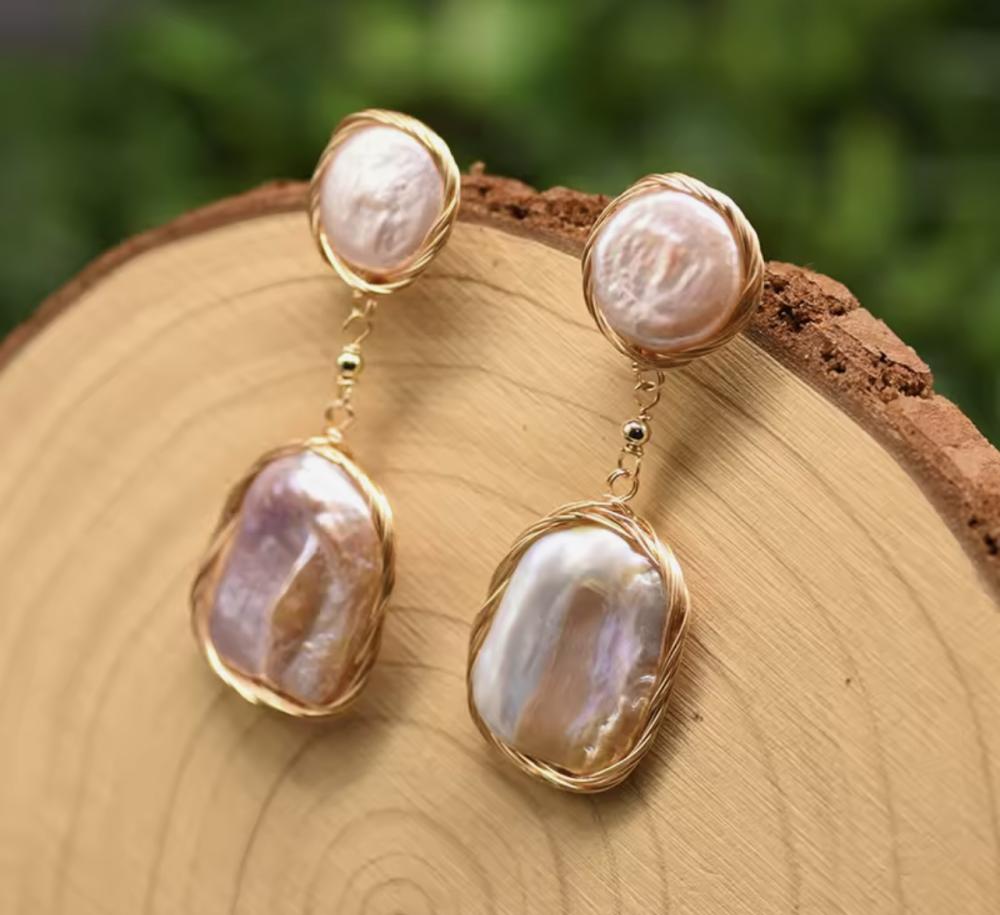 حلق من اللؤلؤ الطبيعي و الفضه الاصلي S925 ومطلي بالذهب عيار 18k.. الرجاءقراءة طرق المحافظه على المجوهرات 🤍
