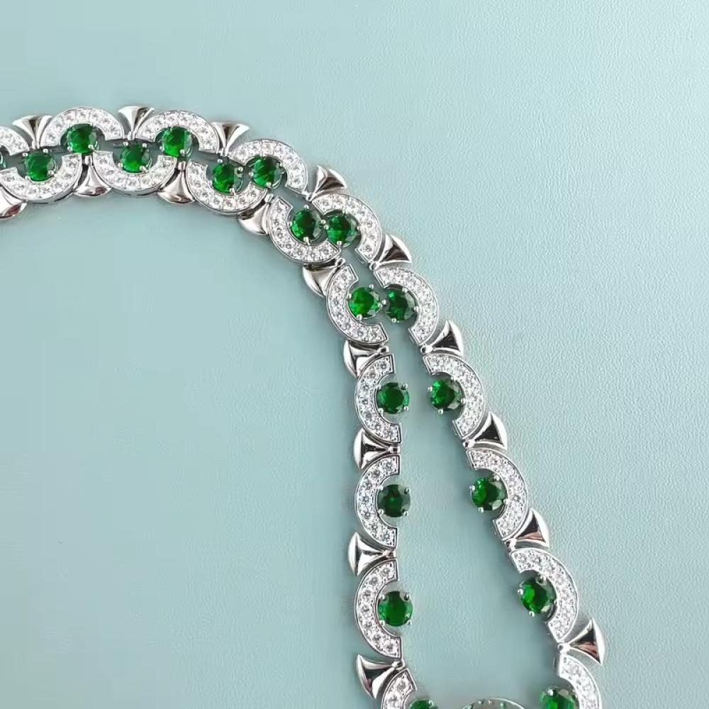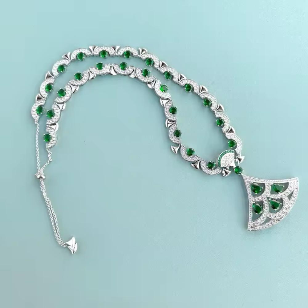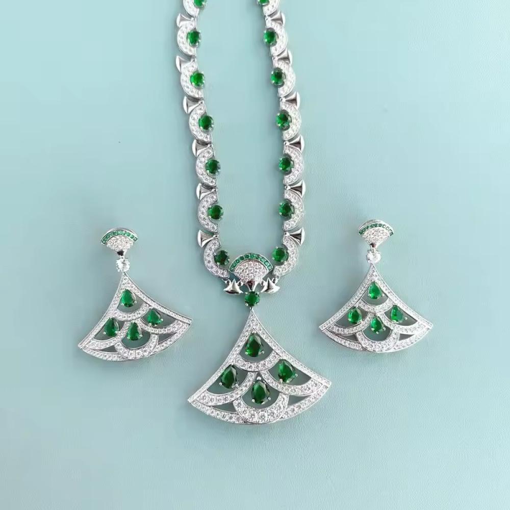 طقم قلادة المروحه وحلق من الزركون الأخضر جديد للنساء مطلي بالذهب الأبيض رفيع المستوى بمواصفات عالميه و بأعلى جوده