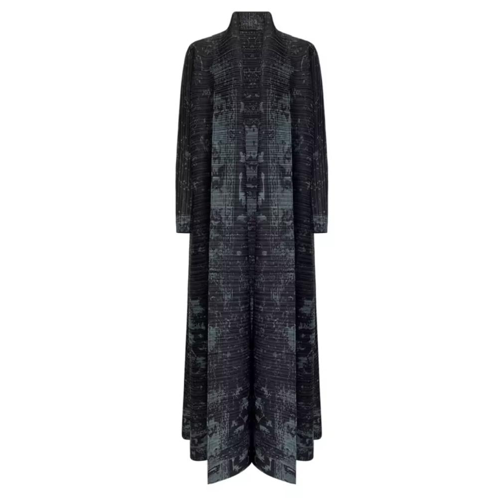 عبايه أنيقه بأكمام طويلة وياقة دائرية من القماش البليسيه