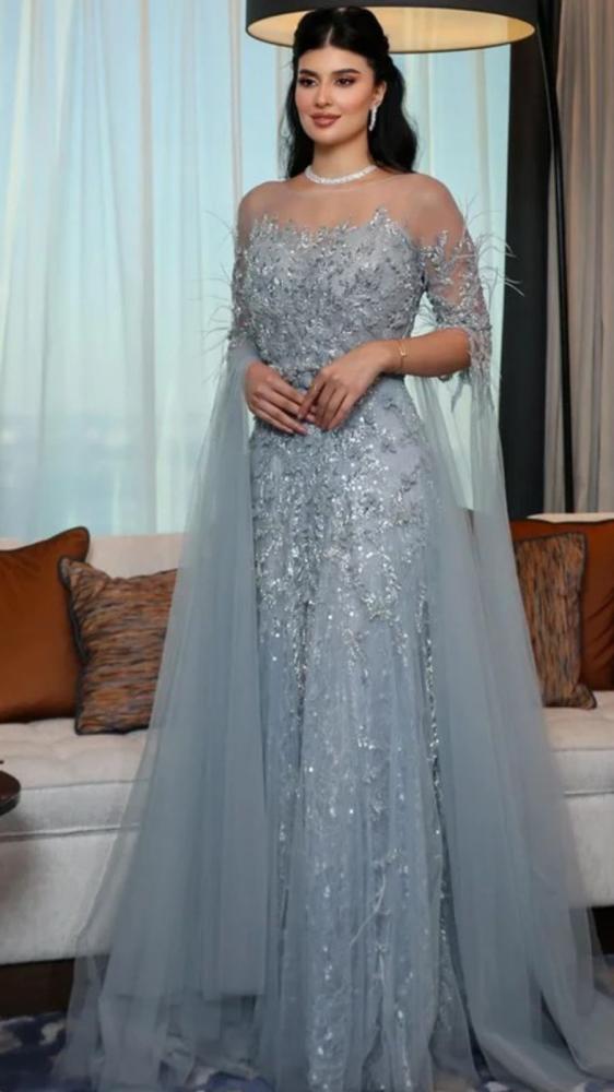 فستان سهرة تفصيل فقط من التول الفرنسي المبطن والمرصع بالخرز للسهرات والمناسبات الخاصه