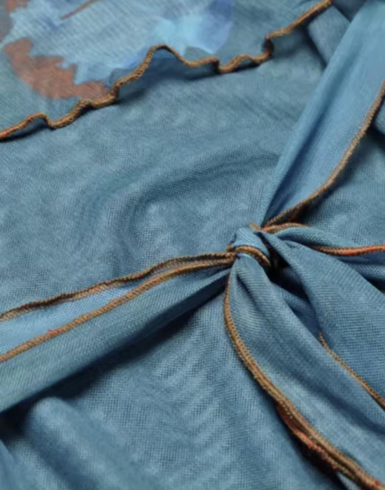 • يحتوي على طباعة زهرية بلونين رئيسيين (أزرق فاتح وألوان بني محايدة) مما يضفي عليه طابعاً فنياً وأنيقاً.